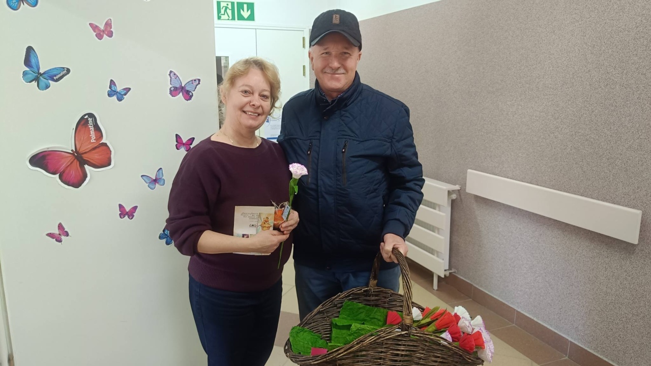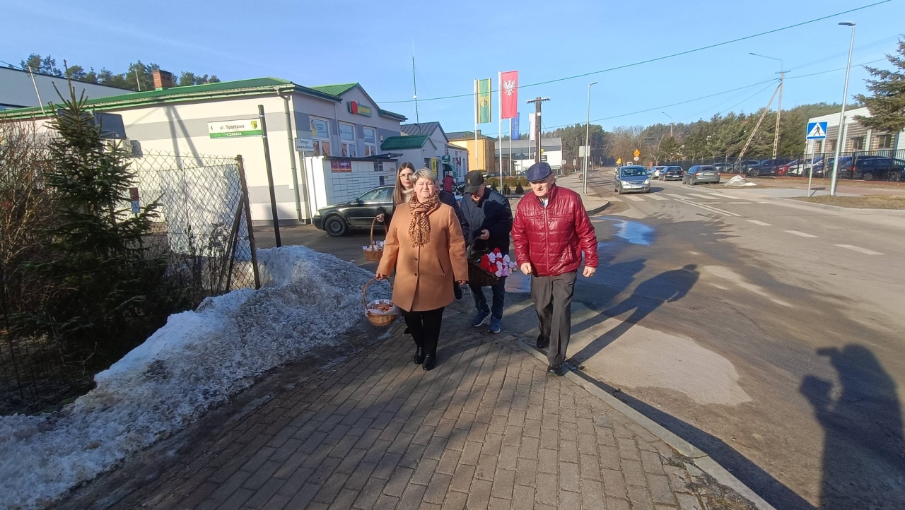 W tym roku do akcji przyłączyli się panowie z Klubu Senior+ w Długiem. Przygotowali oni dla pań goździki zrobione z bibuły.