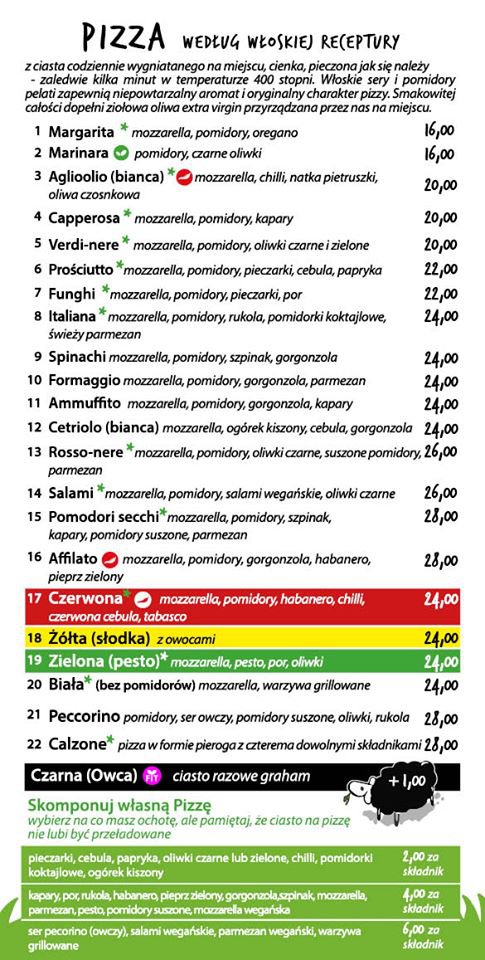 Czarna Owca Wege Bar łączy w sobie zasady zdrowego odżywiania z różnych stron świata. Tylko u nas w jednym miejscu można napić się indyjskiego tulsi, czy południowoamerykańskiej yerby, spróbować bliskowschodniego falafela, zjeść prawdziwie włoską pizzę, pastę czy focaccię, a także zamówić solidną porcję polskich pieczonych pierogów - piecuchów. Wszystko oczywiście wegetariańskie.
