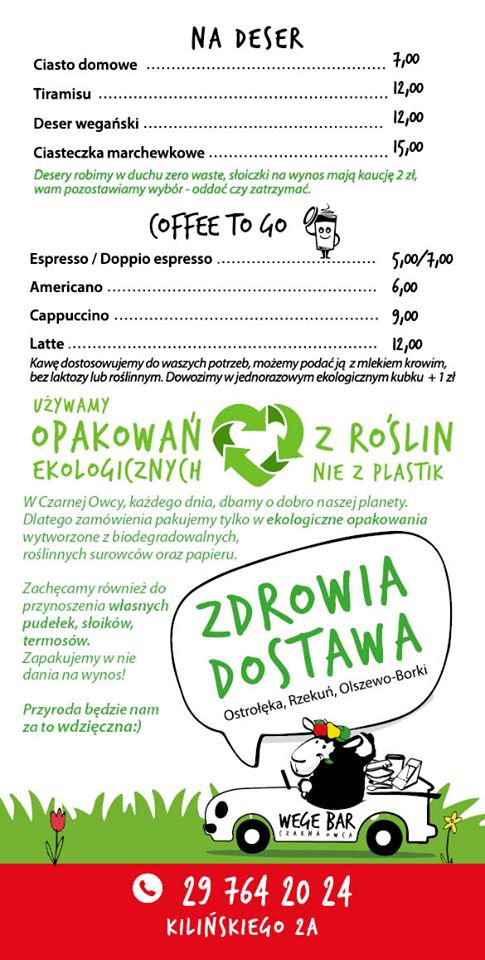 Czarna Owca Wege Bar, ul. Kilińskiego 2a, 07-410 Ostrołęka, tel. 29 764 20 24.