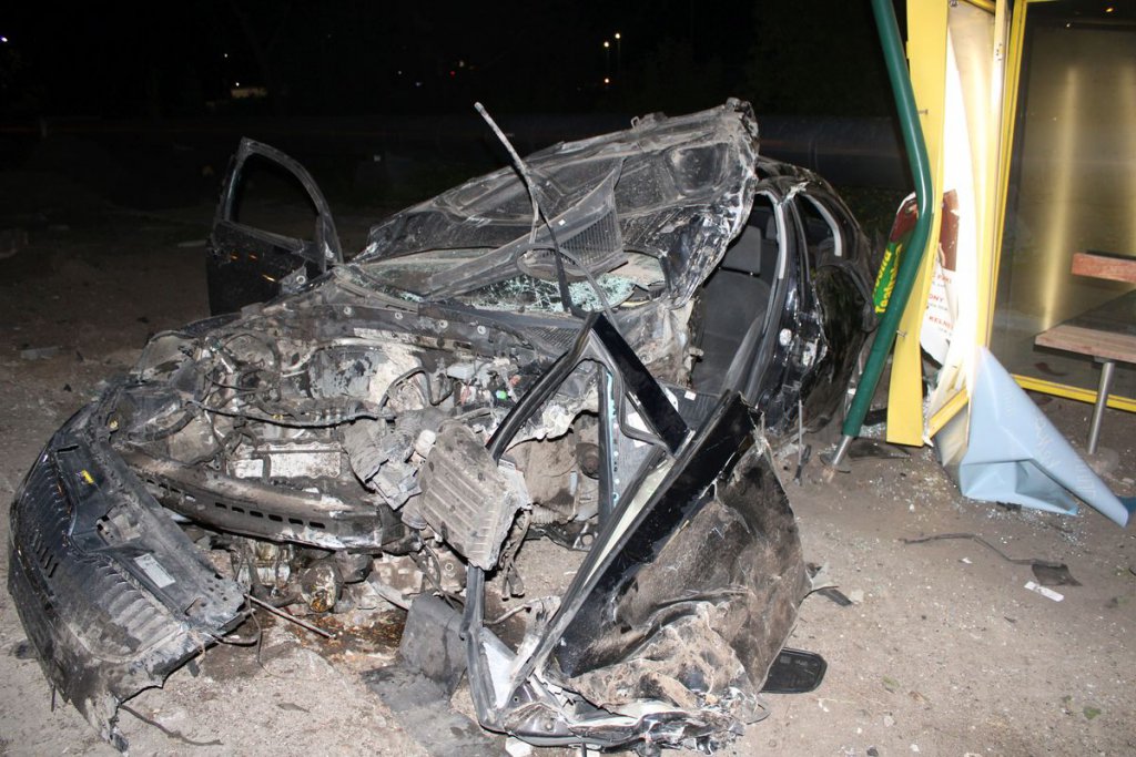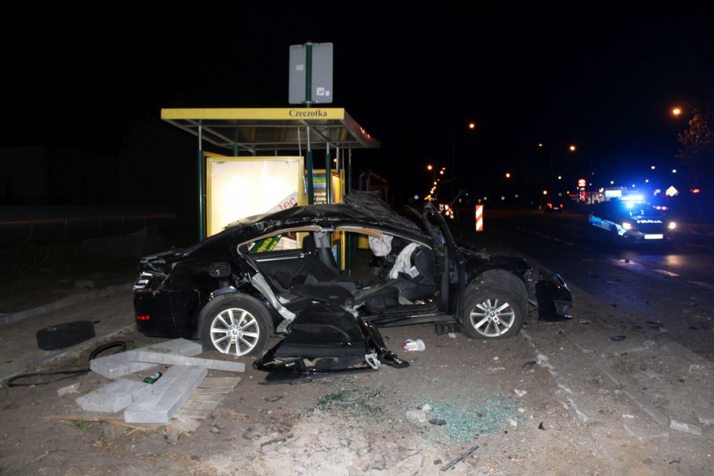 Prędkość, z jaką skoda uderzyła o drzewa a następnie wbiła się we wiatę przystankową musiała być ogromna. Świadczy o tym skala zniszczeń. Skoda została doszczętnie zniszczona. Kierujący autem został zakleszczony we wraku, a gdy strażacy już go wydostali, został zabrany do szpitala.