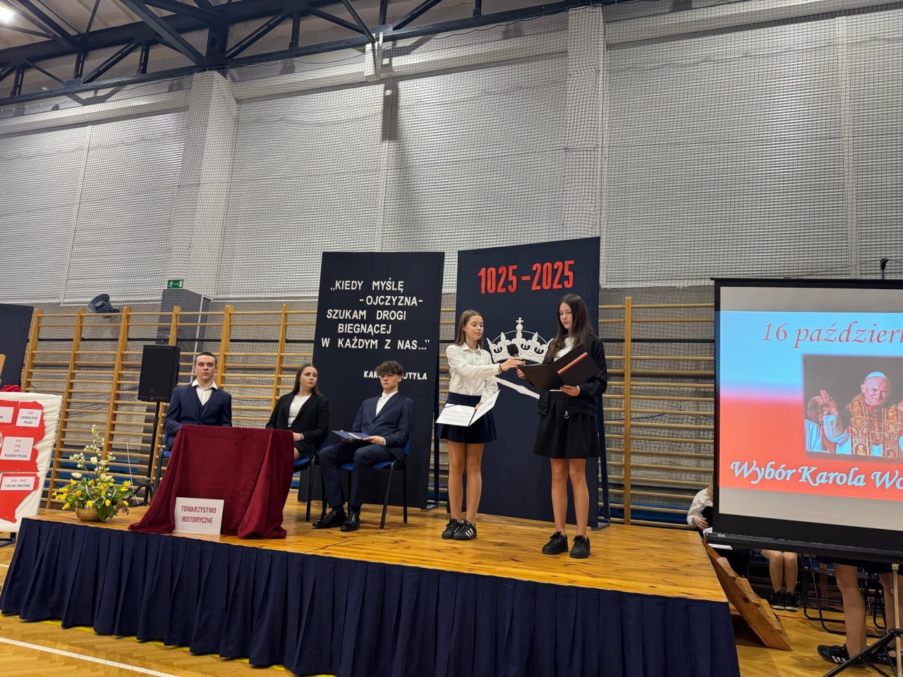 15 kwietnia 2025 roku w Szkole Podstawowej nr 10 im. Jana Pawła II w Ostrołęce odbyła się uroczystość upamiętniająca 1000-lecie Królestwa Polskiego. Wydarzenie zgromadziło społeczność szkolną oraz zaproszonych gości, którzy mieli okazję uczestniczyć w wyjątkowym spektaklu historycznym.