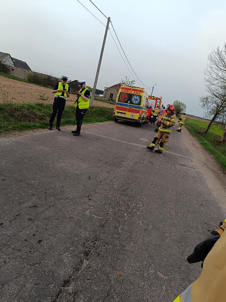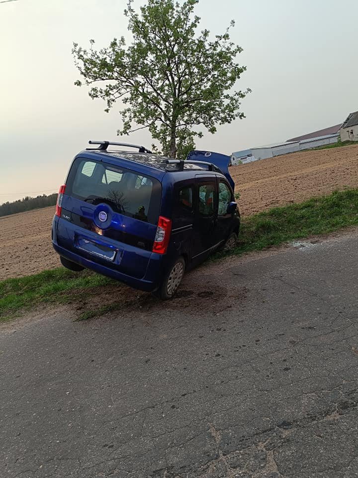 Do wypadku doszło w poniedziałek, 9 kwietnia po godzinie 18:00 na lokalnej drodze w miejscowości Mieczki-Ziemaki w gminie Troszyn. Jak ustalono kierujący autem dostawczym zjechał z jezdni na pobocze i uderzył w drzewo. Pojazd zawisł na pniu a kierowca oddalił się z miejsca zdarzenia.