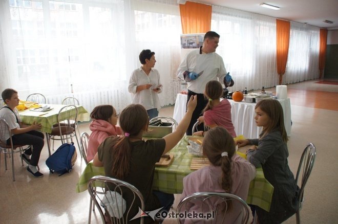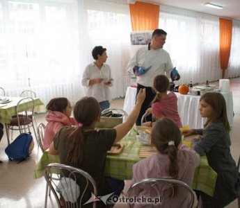 Spotkanie z kucharzem oraz dietetykiem w ostrołęckiej „piątce” odbyły się w środę, 18 października w ramach promowania zdrowego stylu życia. Podczas warsztatów dzieci dowiedziały się jak przygotowywać pyszne i przede wszystkim zdrowe posiłki, czym jest zbilansowana dieta i jak niezwykle ważna jest dla młodego i aktywnego ucznia.