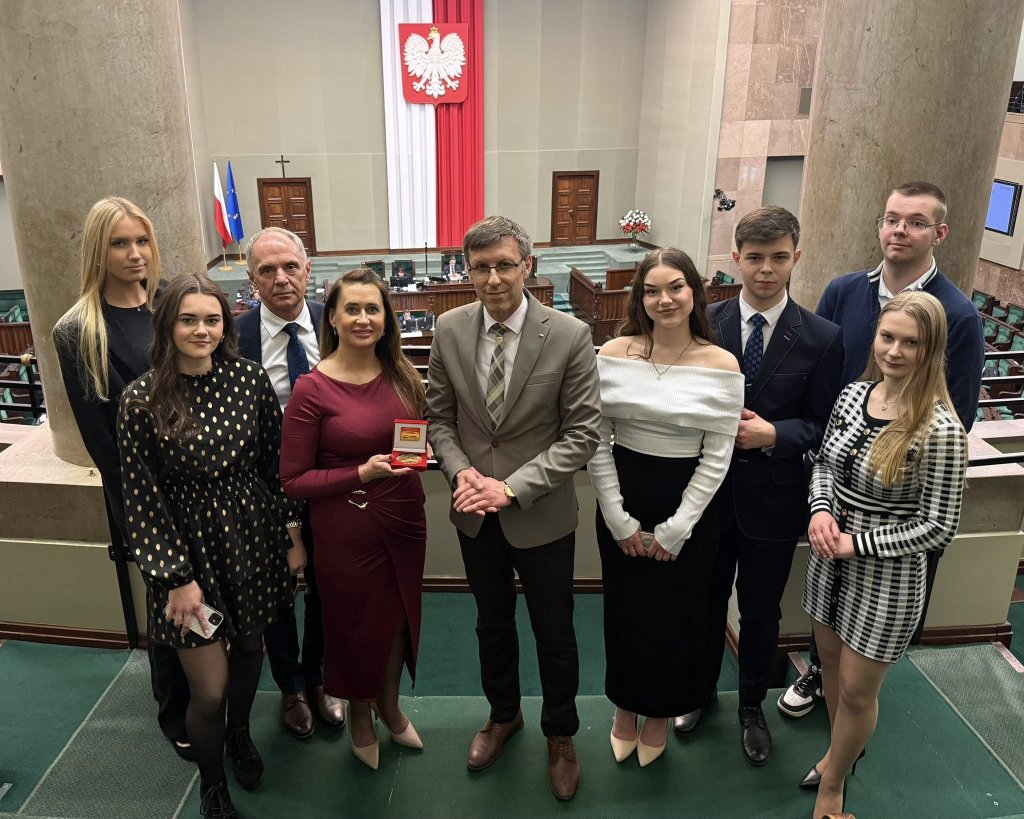 Wizyta miała szczególny wymiar - poseł Grabowski wręczył medal sejmowy Urszuli Zadrodze, nauczycielce historii i języka polskiego, opiekunce samorządu uczniowskiego. Wyróżnienie przyznano za wybitne osiągnięcia w pracy z młodzieżą. Delegacji towarzyszył dyrektor szkoły Bogusław Konrad.