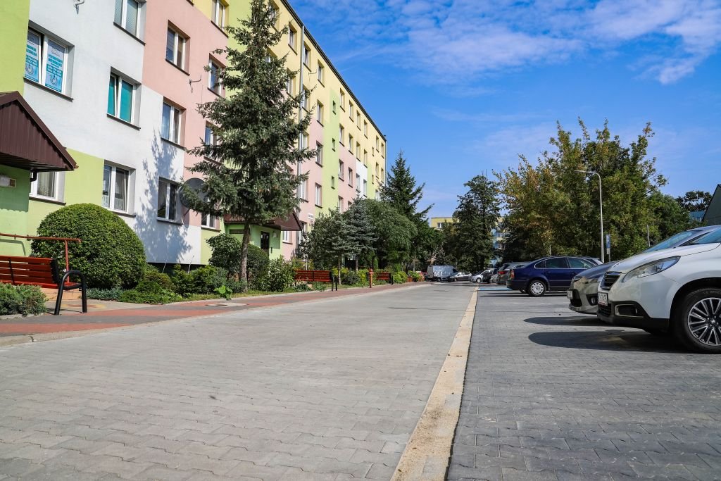 - Przebudowa zjazdów, stanowisk postojowych i budowa nowych miejsc parkingowych