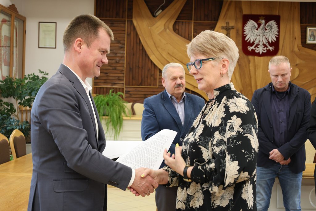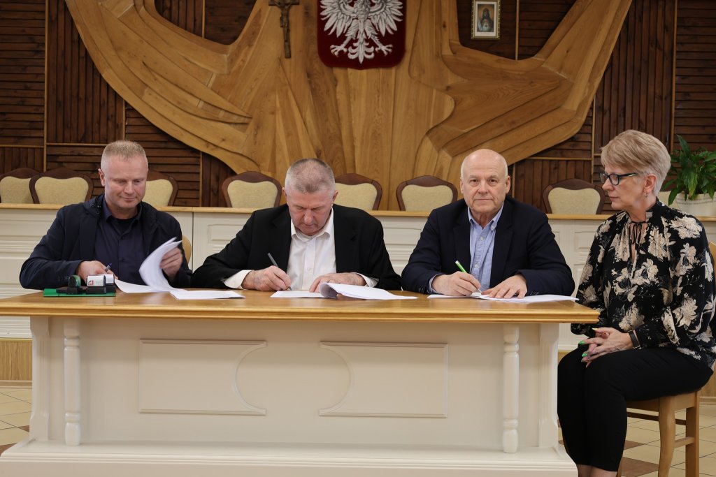 W Urzędzie Miejskim w Myszyńcu odbyło się uroczyste podpisanie umowy z firmą, która wygrała przetarg na odbudowę 2,2-kilometrowego odcinka drogi powiatowej 2585. Inwestycja, warta ponad 6 milionów złotych, ma zakończyć się w ciągu 6 miesięcy.