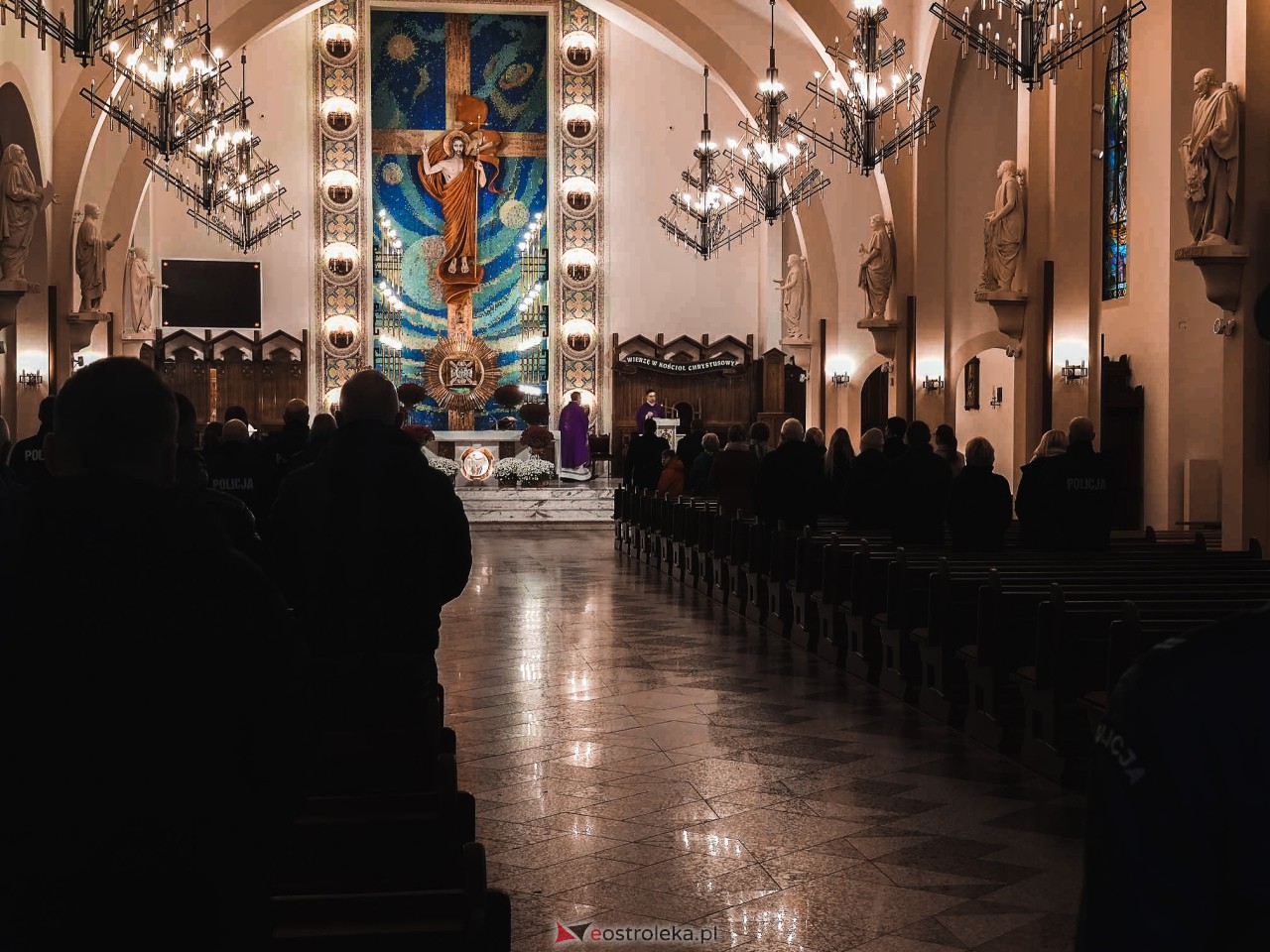 Podczas uroczystej mszy świętej w kościele pw. Zbawiciela Świata ostrołęccy policjanci wspominali zmarłych kolegów i koleżanki - funkcjonariuszy i pracowników policji.