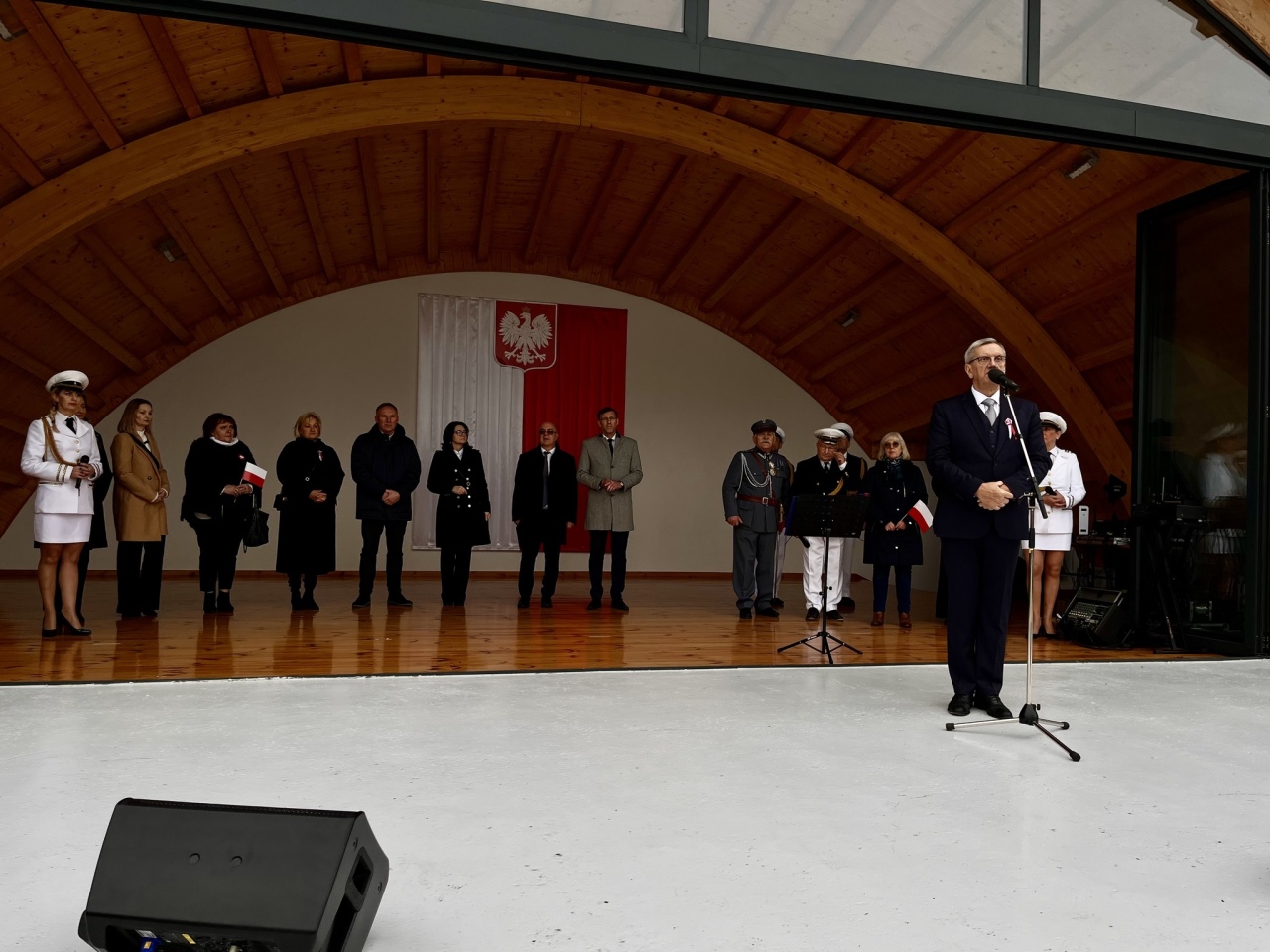 Główna część obchodów przeniosła się o godzinie 12:00 do amfiteatru. Rozbrzmiał tam Hymn Polski, który wszyscy zgromadzeni mieszkańcy i goście odśpiewali z głęboką dumą, symbolicznie manifestując swoją jedność z narodem.