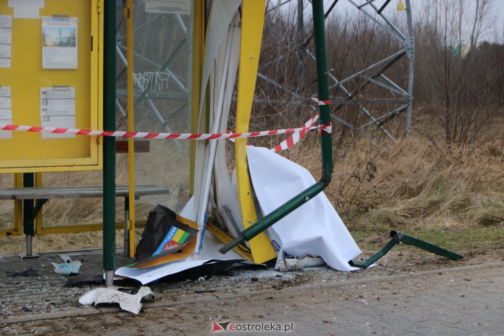 W niedzielny poranek przy ulicy ks. Popiełuszki w Ostrołęce zauważono uszkodzoną wiatę przystankową. Sprawca uciekł, ale na miejscu zdarzenia zostawił tablicę rejestracyjną swojego auta.