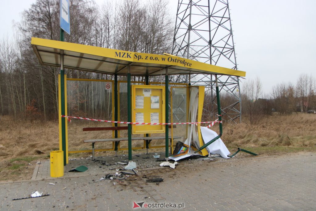 O uszkodzonej wiacie przystankowej policja z Ostrołęki została powiadomiona w niedzielę, 16 stycznia w godzinach porannych. Przystanek został poważnie zniszczony, rozbita jest szklana witryna, pogięte zostały stalowe elementy konstrukcji. Auto, które wjechało we wiatę musiało poruszać się ze znaczną prędkością. Sprawca zdarzenia uciekł, pozostawił jednak na miejscu uszkodzone elementy auta oraz tablicę rejestracyjną. To dzięki niej policja trafiła na trop kierowcy.