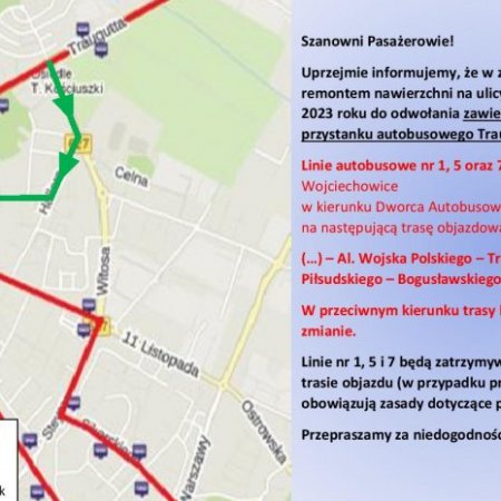 Równolegle podobne prace prowadzone są na ulicy Traugutta. Naprawa nawierzchni miejskich ulic związana jest z zaplanowanymi na 24 czerwca Mistrzostwami Polski w Kolarstwie Szosowym.