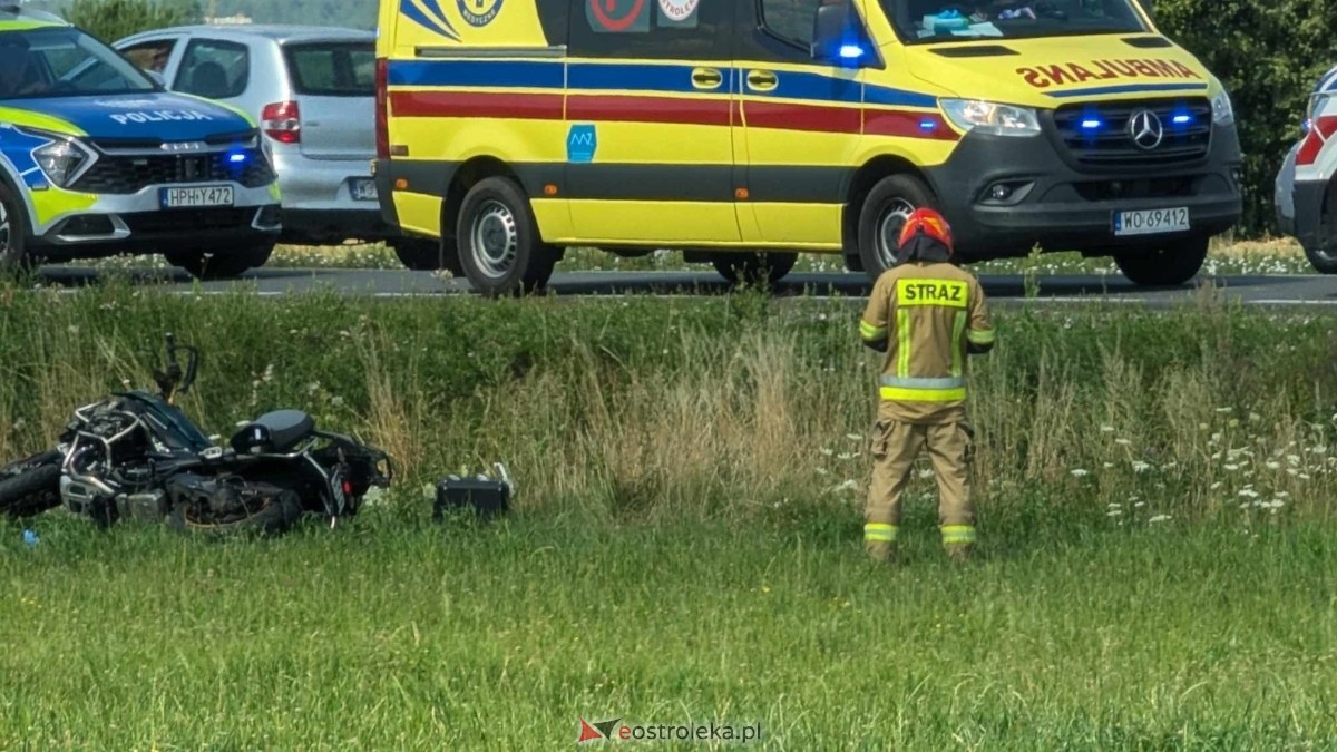 Wypadek na dk-53 między Ostrołęką a Kadzidłem. W zderzeniu z osobówką ucierpiał motocyklista. Uważajcie, ruch w wakacyjne weekendy jest wzmożony!
