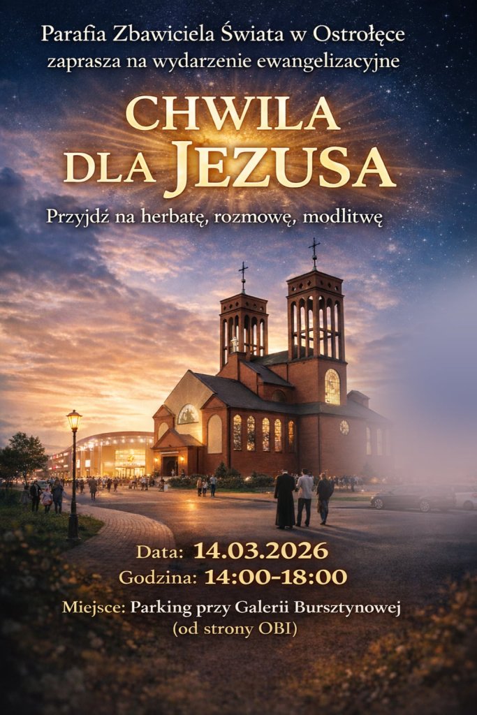Już w najbliższą sobotę, 14 marca, mieszkańcy Ostrołęki będą mieli okazję do zatrzymania się w codziennym biegu. Na placu przed Galerią Bursztynową odbędzie się wydarzenie ewangelizacyjne pod hasłem „Chwila dla Jezusa”. To inicjatywa skierowana do każdego, kto szuka rozmowy, wspólnej modlitwy lub po prostu chwili wytchnienia w życzliwej atmosferze.