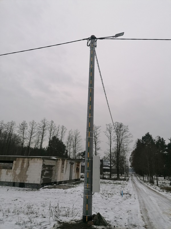 - Odcinek 1 – Budowa napowietrznej linii oświetlenia ulicznego przewodem AsXSn 2x25mm2 o długości 125 metrów– 2 lampy oświetlenia ulicznego;