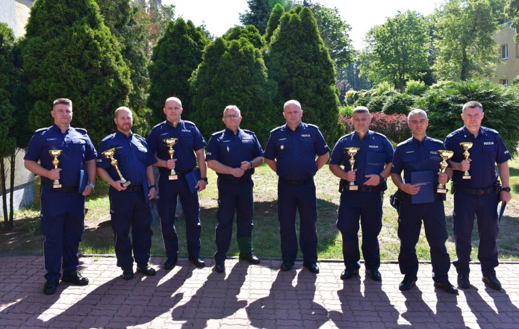 Policjantom biorącym udział w zawodach pogratulował i wręczył pamiątkowe dyplomy oraz puchary I Zastępca Komendanta Wojewódzkiego Policji z siedzibą w Radomiu insp. Piotr Janik i Zastępca Naczelnika Wydziału Prewencji KWP zs. w Radomiu kom. Krzysztof Maćkula.