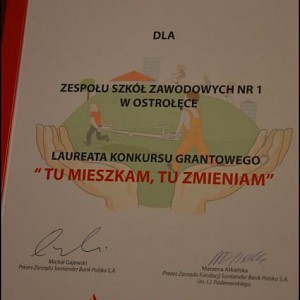fot. eOstroleka.plW warszawskim teatrze „Capitol”, odbyła się Gala Wręczenia dyplomów laureatom konkursu grantowego „Tu Mieszkam, Tu Zmieniam”, organizowanego przez Fundację Santander. Wśród laureatów konkursu znalazł się Zespół Szkół Zawodowych nr um dr Józefa Psarskiego w Ostrołęce z maksymalnym możliwym dofinansowaniem w wysokości 10 000 złotych.