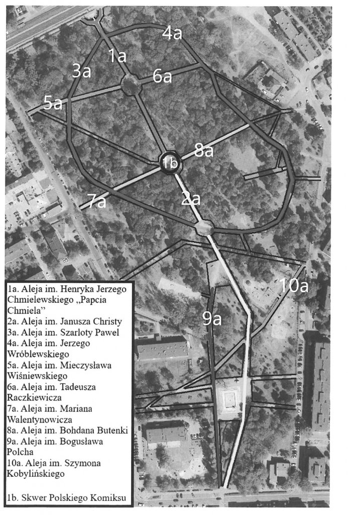 W związku z propozycją wnioskodawców, aleje będą nosić imiona: Henryka Chmielewskiego "Papcia Chmiela", Janusza Christy, Szarloty Pawel, Jerzego Wróblewskiego, Mieczysława Wiśniewskiego, Tadeusza Raczkiewicza, Mariana Walentynowicza, Bohdana Butenko, Bogusława Polcha i Szymona Kobylińskiego. Ma być też Skwer Polskiego Komiksu.