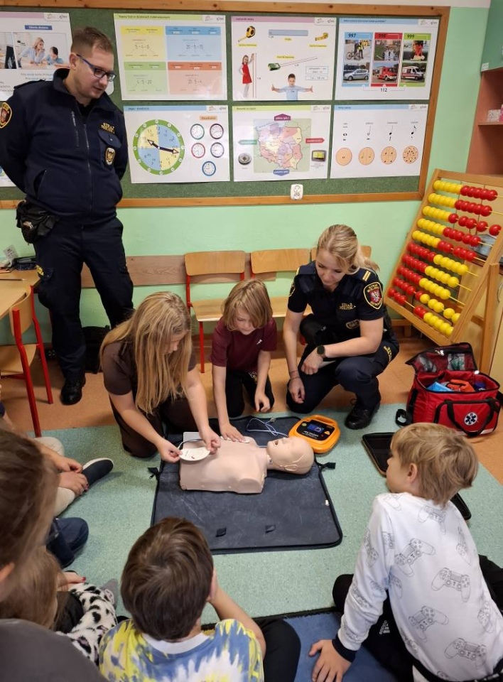 Szczególny nacisk położono na praktyczną naukę udzielania pierwszej pomocy. Funkcjonariusze uczyli najmłodszych, jak prawidłowo reagować w przypadku zagrożenia zdrowia lub życia, a także zapoznali ich z działaniem i zastosowaniem Automatycznego Defibrylatora Zewnętrznego (AED). Prelekcje, połączone z pokazami i ćwiczeniami, spotkały się z ogromnym zainteresowaniem i skupieniem ze strony dzieci.