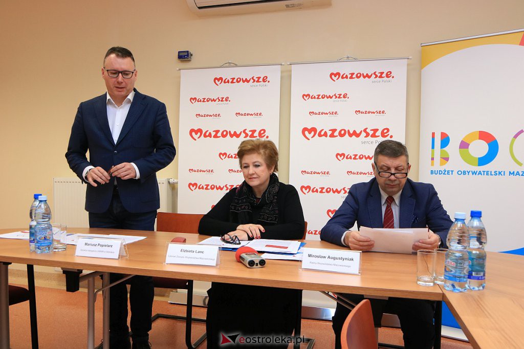 O zasadach naboru, terminach, głosowaniu, kwocie i możliwych korzyściach dla mieszkańców województwa mazowieckiego wynikających z BOM (Budżet Obywatelski Mazowsza) mówili podczas dzisiejszego spotkania przedstawiciele samorządu wojewódzkiego – Elżbieta Lanc (członek zarządu), Mirosław Augustyniak (radny sejmiku) i Mariusz Popielarz (dyrektor delegatury UMWM w Ostrołęce).