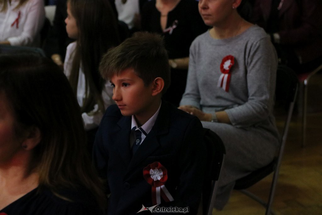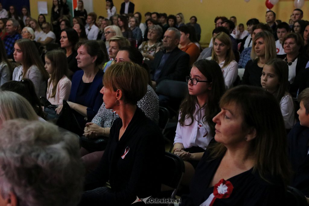 W pięknie udekorowanej w barwy narodowe sali gimnastycznej uczniowie wykonali poruszający montaż słowno-muzyczny nawiązujący w tematyce do przypadającego za kilka dni Narodowego Święta Niepodległości. Symbole narodowe – godło Polski z Orłem Białym w koronie, polska flaga i hymn to dla uczniów „szóstki” ważne elementy codziennej edukacji, co udowodnili okazując tym symbolom wielki szacunek podczas akademii.