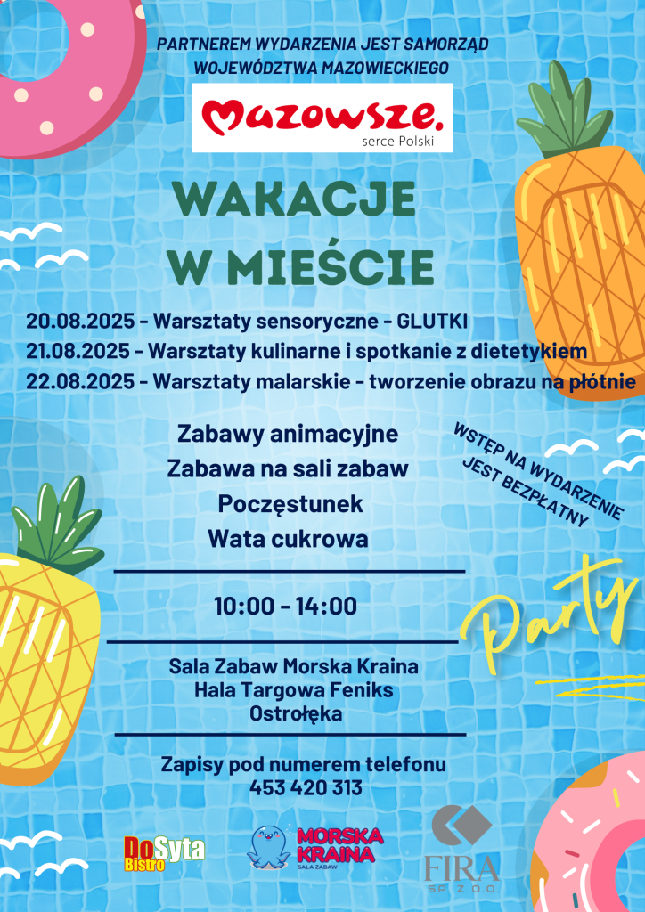 Wstęp na wydarzenie, w dniach 20-22 sierpnia w godz. 10:00-14:00 jest bezpłatny. Zapisy pod numerem telefonu 453 420 313. Partnerem wydarzenia jest samorząd województwa mazowieckiego.