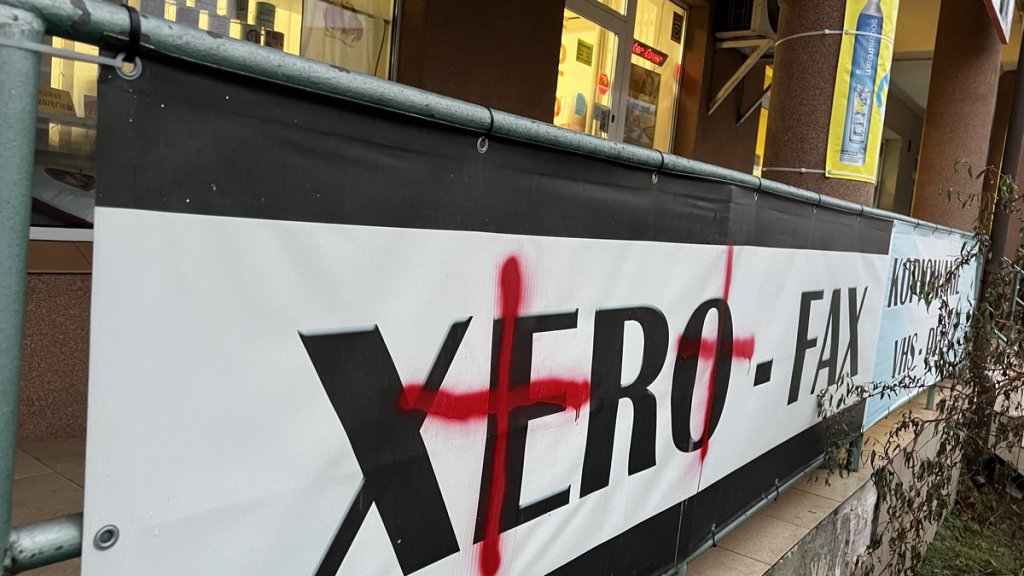 Do zdarzenia doszło w nocy z wtorku na środę. Wandal-artysta pomalował witryny lokali usługowych. Nie oszczędził też znajdującego się przed wejściem banneru reklamowego.
