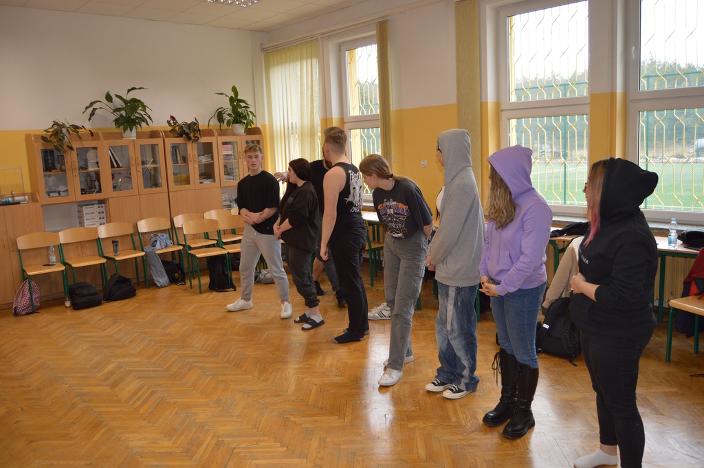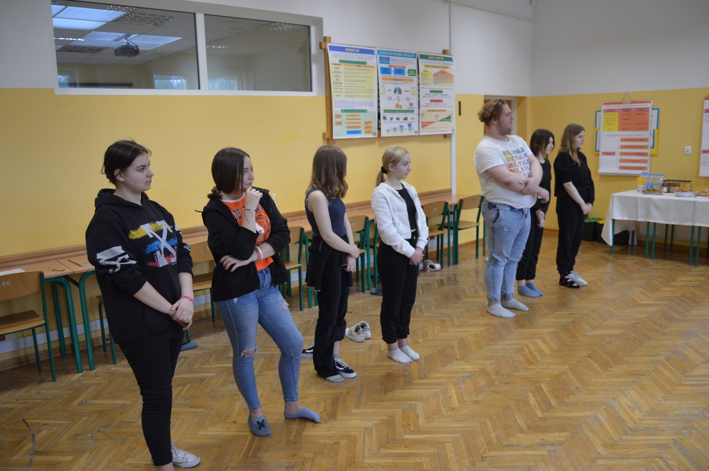Kilkanaścioro uczniów Technikum Technologii Żywności ZSP w Łysych oraz ZSP w Myszyńcu poznało niektóre tajniki sztuki aktorskiej oraz blaski i cienie tej profesji. Prowadzący - pełen empatii i życzliwości dla młodszych kolegów - zachęcał, aby pielęgnować w sobie naturalny talent i słuchać głosu serca.