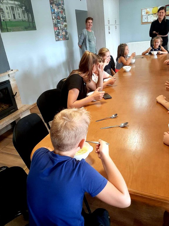 W piątek 15 lipca w świetlicy dzieci wspólnie z paniami z Koła Gospodyń Wiejskich ugotowała tradycyjny rosół. W oczekiwaniu na przygotowaną przez siebie potrawę grały w badmintona i tenisa stołowego oraz robiły prace plastyczne. Spotkanie zakończono wspólnym jedzeniem pysznego dania.