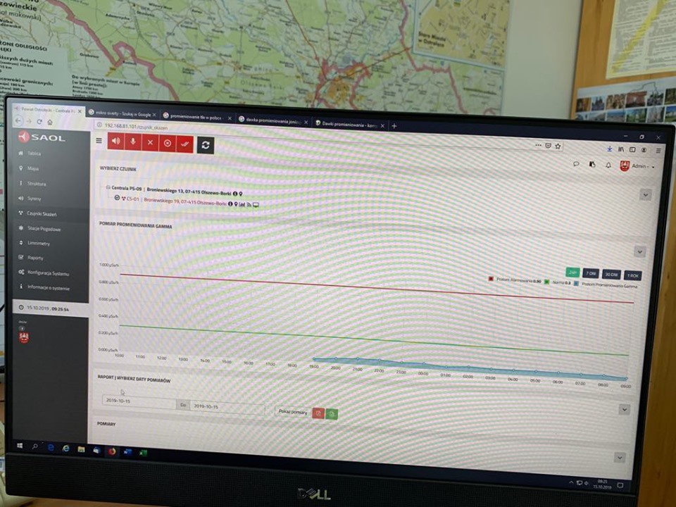 Stacja pogody pozwala na bieżąco monitorować temperaturę, prędkość wiatru, ciśnienie atmosferyczne, opady, wilgotność powietrza. Czujnik skażeń monitoruje z kolei skażenie minutowe i godzinowe w mikrosiwertach. Oba urządzenia zostały kupione ze środków własnych powiatu oraz dotacji wojewody mazowieckiego. Kosztowały 16.974 zł.