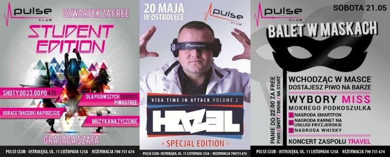 W piątkowy wieczór nie może Cię zabraknąć w Pulse Club! Rezerwacja miejsc pod numerem telefonu 790-751-674. Zapraszamy do klubu przy 11 listopada 125a!