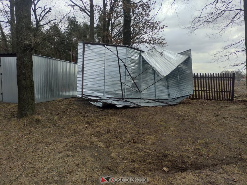 W nocy z piątku na sobotę wichura wyrwała z mocowań i przewróciła przystanek autobusowy w miejscowości Borawe, silne podmuchy wiatru uniosły z ziemi blaszany garaż, który został zmiażdżony niczym kartonowe pudełko i wylądował w przydrożnym rowie na trasie między Ostrołęką a Borawem.
