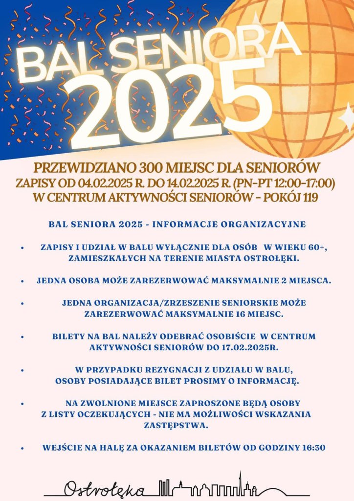 Wydarzenie organizowane jest przez prezydenta Ostrołęki, Pawła Niewiadomskiego oraz Centrum Aktywności Seniorów. Wstęp na bal jest bezpłatny dla osób powyżej 60. roku życia, mieszkających na terenie Ostrołęki.