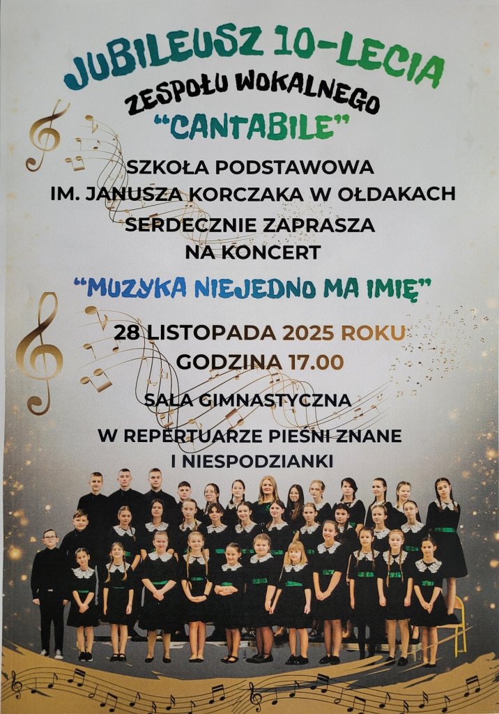 Dekada działalności artystycznej to doskonały moment na podsumowania. Zespół Wokalny Cantabile na stałe wpisał się w krajobraz kulturalny lokalnej społeczności, uświetniając swoimi występami liczne uroczystości. Tegoroczny jubileusz 10-lecia zbiega się z innym ważnym wydarzeniem – obchodami Dnia Patrona Szkoły Podstawowej im. Janusza Korczaka w Ołdakach.