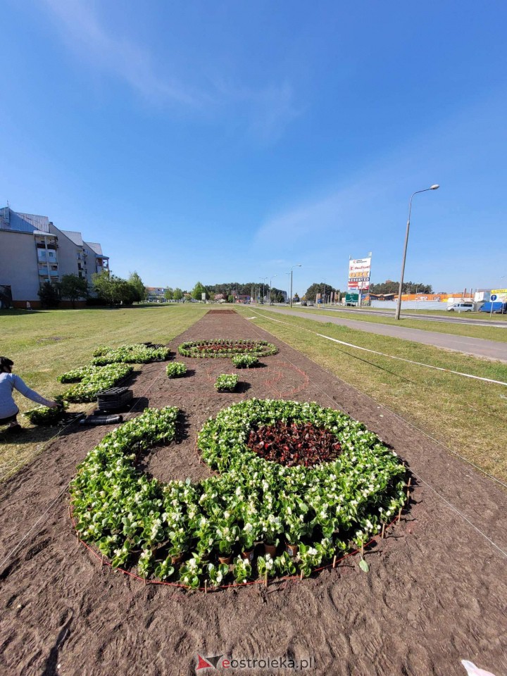 Z okazji przypadającego w tym roku jubileuszu 650-lecia nadania Ostrołęce praw miejskich na osiedlu Centrum powstaje gigantyczny napis składający się z 14 tysięcy kwiatów.