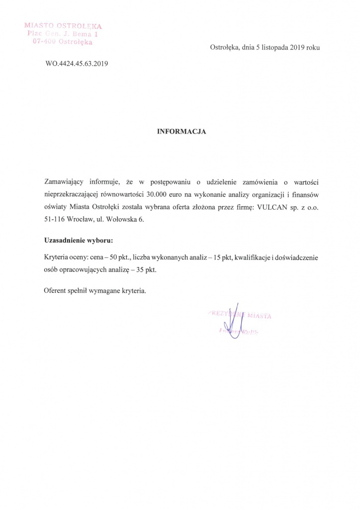 Wiemy już, kto odpowiadał będzie za wykonanie analizy organizacji i finansów oświaty Miasta Ostrołęki. Wybrano wykonawcę, którym jest firma z województwa dolnośląskiego.