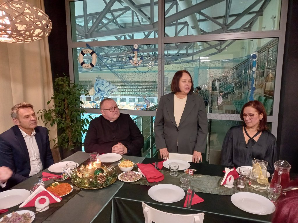 Zgodnie z polską tradycją, wszyscy zebrani podzielili się opłatkiem, składając sobie nawzajem świąteczne życzenia zdrowia, spokoju i pomyślności. Nie zabrakło również degustacji tradycyjnych wigilijnych potraw, które uświetniły to przedświąteczne spotkanie.