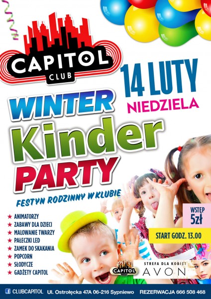 W niedzielę 14 lutego, zapraszamy wszystkich na Winter Kinder Party - edycja zimowo-walentynkowa w Capitolu.