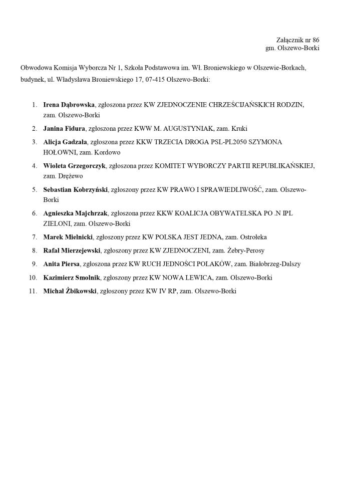 - W celu przeprowadzenia wyborów do Sejmu Rzeczypospolitej Polskiej i do Senatu Rzeczypospolitej Polskiej zarządzonych na dzień 15 października 2023 r., powołuje się obwodowe komisje wyborcze, w gminach na obszarze powiatu ostrołęckiego, powiatu ostrowskiego, w mieście na prawach powiatu Ostrołęce - poinformował komisarz wyborczy Kamil Skwiot w postanowieniu.