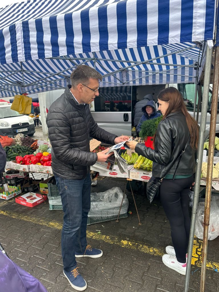 Mimo chłodnej, majowej aury, na targowisku w Wyszkowie od samego rana panował wzmożony ruch. Wśród kupujących i sprzedających można było spotkać posłów Prawa i Sprawiedliwości – Marcina Grabowskiego oraz Marię Koc, którzy aktywnie włączyli się w ostatnią fazę kampanii wyborczej.