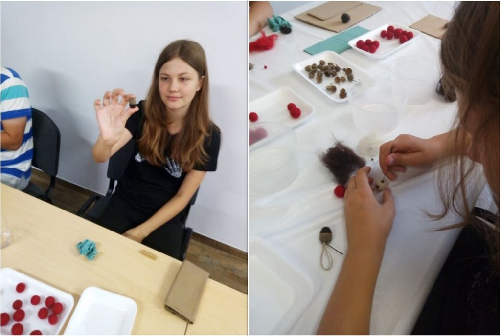 Każdy otrzymał kawałek wełny, zamoczył go w wodzie i odrobinie mydła, a następnie filcował w dłoniach kulę do wyschnięcia. Potem w podobny sposób wykonano żołędzie. Wychowankowie mogli również wykonać prace według własnych pomysłów. Powstały: żółwie, biedronki, węże, króliki oraz głowa trola. W tych pracach została zastosowana technika na sucho z wykorzystaniem igły. Pomiędzy wykonywaniem prac na dzieci czekał słodki poczęstunek.- informuje TPD