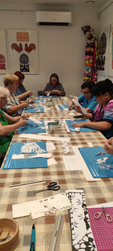 Pracownia etnodizajnu w Muzeum Kultury Kurpiowskiej w wakacje działa prężnie produkując wyjątkowe i niepowtarzalne dzieła. W niedzielę, 28 lipca podczas kolejnej edycji warsztatów “Etnodizajn po kurpiowsku” uczestnicy tworzyli okienne firany i podstawki na kubki inspirowane wzorami z kurpiowskich wycinanek.