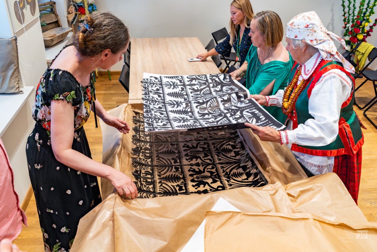 Twórczyni kurpiowska Czesława Kaczyńska podarowała Państwowemu Muzeum Etnograficznego własnoręcznie wykonane wycinanki.