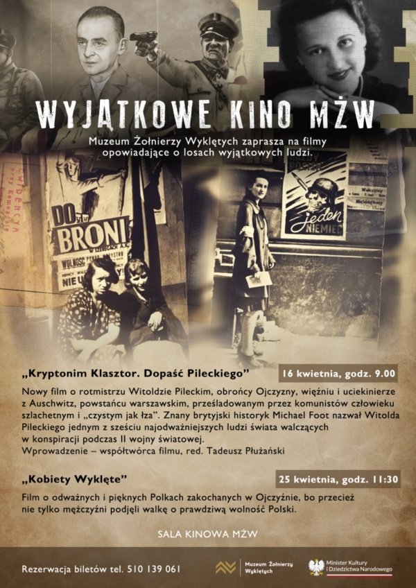 Muzeum Żołnierzy Wyklętych zaprasza na filmy opowiadające o losach wyjątkowych ludzi. Bezpłatne bilety na seanse można odebrać w kasie muzeum lub zarezerwować je, dzwoniąc pod numer telefonu 510 139 061.