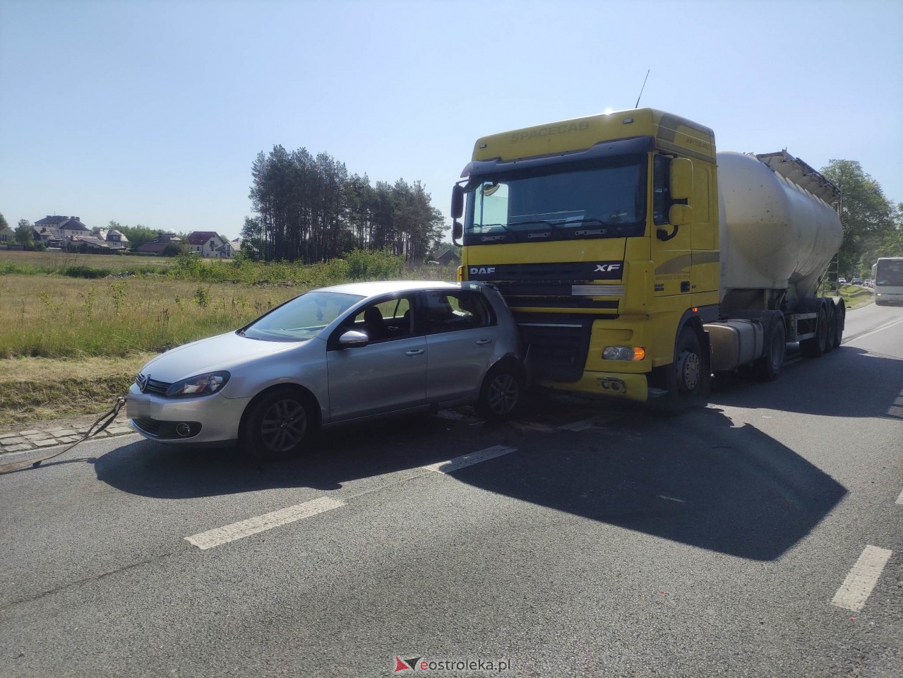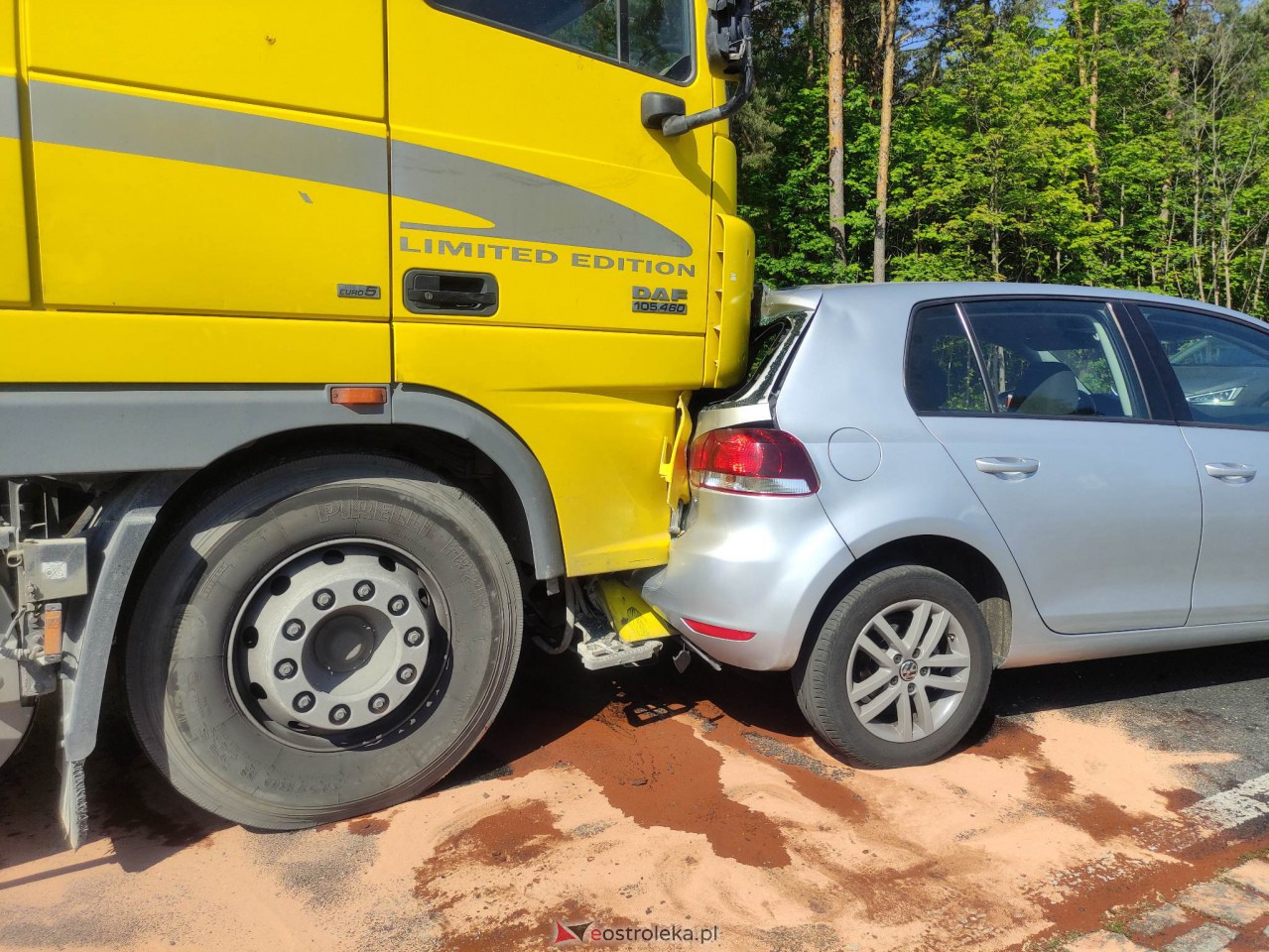 Ze wstępnych ustaleń wynika, że kierujący ciągnikiem siodłowym marki DAF, 40-letni mieszkaniec powiatu ostrołęckiego nie zachował bezpiecznego odstępu od pojazdu marki vw golf, którego kierowca wykonywał manewr skrętu w lewo. W wyniku wypadku poszkodowany został 32-letni kierowca vw. Mężczyzna został zabrany do szpitala.