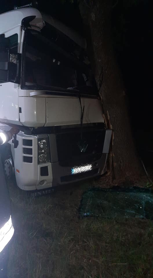 Do wypadku doszło po godzinie 22:00 na 94 kilometrze krajowej 53-ki w miejscowości Wach. Jak informują strażacy z miejscowej jednostki ochotniczej straży pożarnej, którzy uczestniczyli w akcji ratunkowej, kierujący ciężarówką zjechał z jezdni na pobocze i następnie uderzył w przydrożne drzewo.
