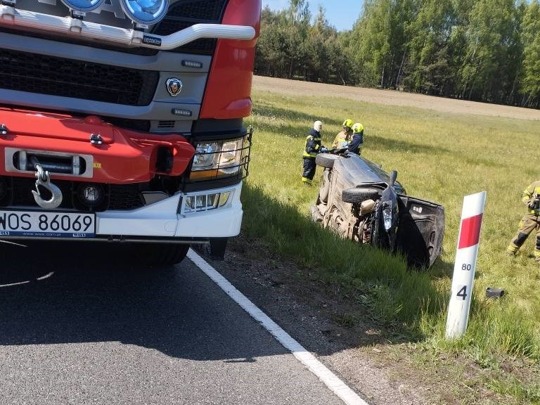 Na miejsce skierowano służby ratunkowe. W działaniach uczestniczyło kilka jednostek straży pożarnej, w tym zastępy z Myszyńca oraz Wydmus. Strażacy zabezpieczyli miejsce zdarzenia oraz sprawdzili, czy w pojeździe nie znajdują się inne osoby.