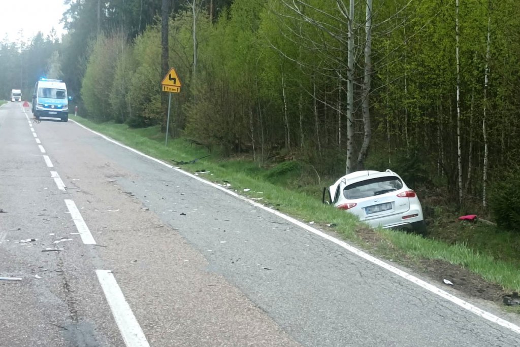 W środę (3.05) około godziny 15:30, policjanci z powiatu szczycieńskiego przybyli na miejsce zdarzenia drogowego na drodze krajowej nr 59 w miejscowości Lipniak. Ze wstępnych ustaleń wynika, że doszło tam do czołowego zderzenia dwóch pojazdów osobowych: opla oraz infiniti. Kierującym opla, jak się później okazało, był 63-letni mieszkaniec gminy Rozogi. Drugim pojazdem podróżowali 57-letni kierowca oraz 45-letni pasażer - obaj mieszkańcy powiatu ostrołęckiego. W wyniku wypadku trzy osoby zostały przetransportowane do szpitali.