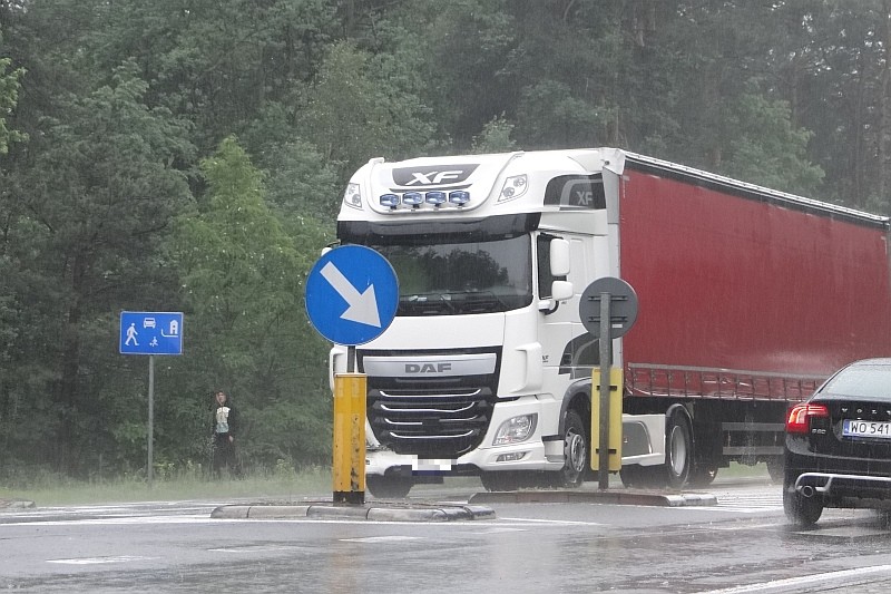 Wypadek na Łomżyńskiej: TIR staranował vw. Rozbity van wpadł do rowu [ZDJĘCIA]