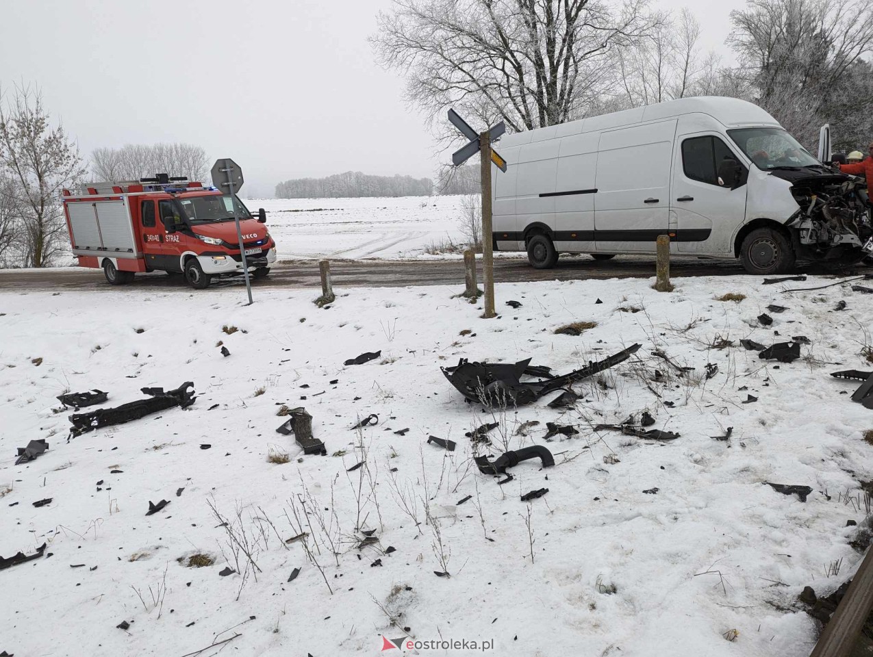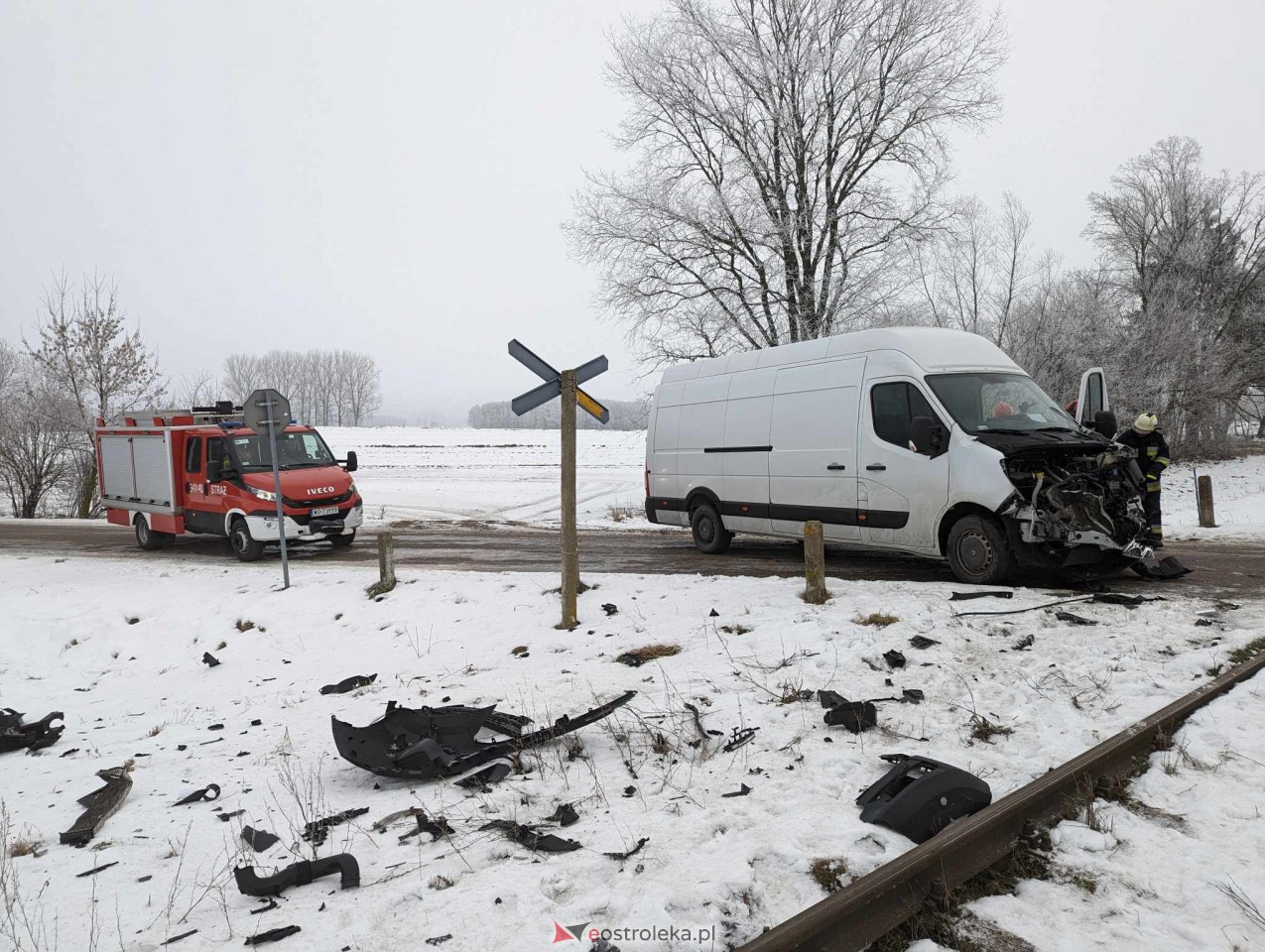 Do wypadku doszło w środę, 10 stycznia po godzinie 11:00 na przejeździe kolejowym między miejscowościami Borek i Skarżyn w gminie Czerwin w powiecie ostrołęckim. Auto dostawcze uderzyło w pojazd szynowy. Ze wstępnych informacji wynika, że nikt nie odniósł obrażeń.