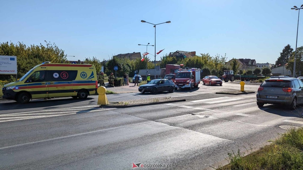 Do wypadku doszło przed godziną 17:00 w czwartek, 1 sierpnia. Na miejsce - na rondo im. Kupiszewskiego u zbiegu ulic 11 Listopada i Ostrowskiej zadysponowano służby ratunkowe. W zderzeniu z osobówką ucierpiał kierujący jednośladem. Poszkodowany został zabrany do szpitala.